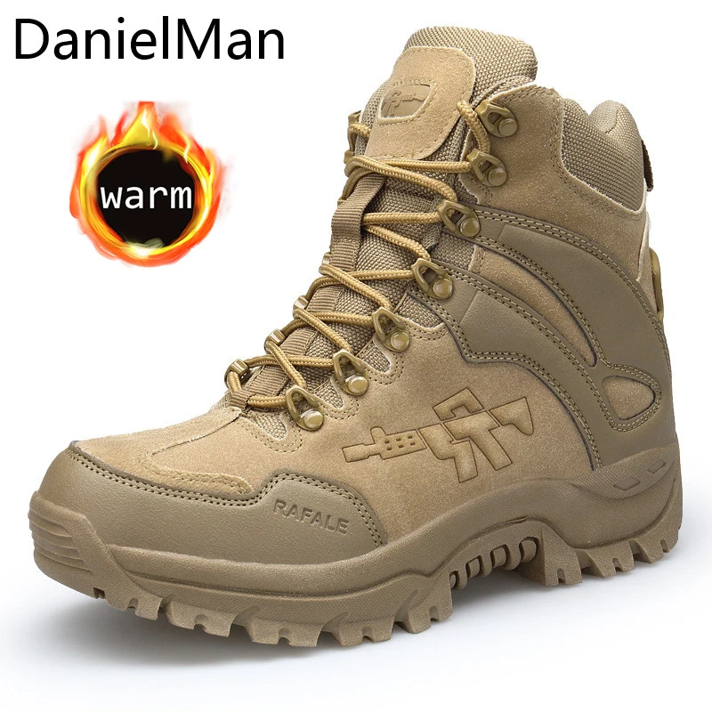 Cheap Danielman Military Leather Boots Men Shoes Men Snow Shoe Winter Outdoor Male Tracking Hiking Shoes